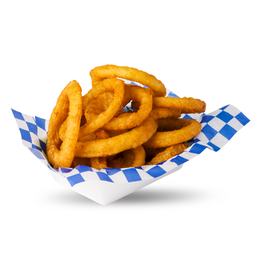 4oz beef patty, bakery bun, tomato, lettuce, deep fried onion curls, and sweet chili mayo.